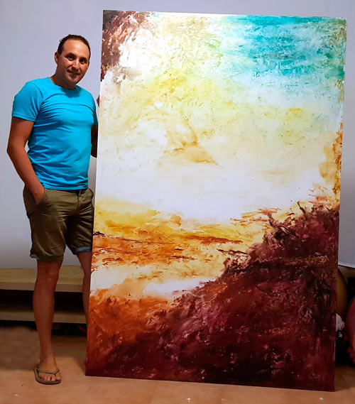 Como artista plástico, baso mi obra pictórica en la elaboración de cuadros utilizando diferentes técnicas (mixtas), pero principalmente sobre lienzos de tela y materia como base y uso de pintura acrílica.